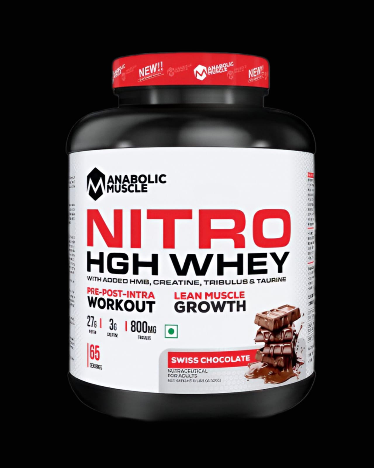 Nitro HGH Whey can be used pre-workout to fuel energy and strength, post-workout to support muscle recovery, and even intra workout to maintain endurance and amino acid supply in the body. It promotes lean muscle growth and helps in overall physical performance improvement. The supplement comes in a Swiss Chocolate flavor which offers a rich and smooth taste experience. It has 65 servings, making it a good long-term protein option for daily gym routines.