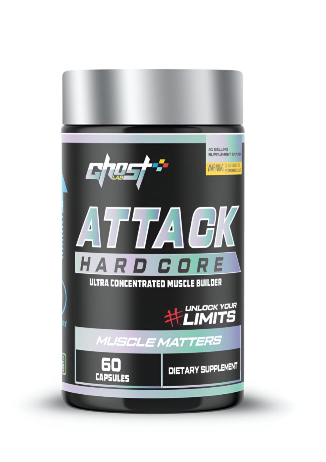 Attack Hard Core by Ghost Lab is a specialized muscle building supplement created for athletes aiming to increase lean muscle size, strength & workout capacity.