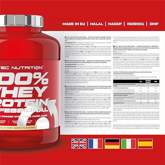 - Scitec Nutrition 100% Whey Professional V2.0 is a high-quality whey isolate based delicious protein powder for muscle building, anti-catabolism and speeding recovery. 30g of 100% Whey Protein per serving. Now with 30g protein per serving, it provides the highest protein content per serving in its class. Contains a high quality fast-acting Cross Flow Microfiltered Whey Isolate as the Primary Source
